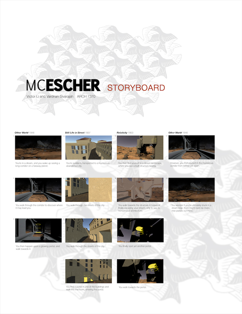 Preliminary storyboard for M.C. Escher in Virtual Reality,