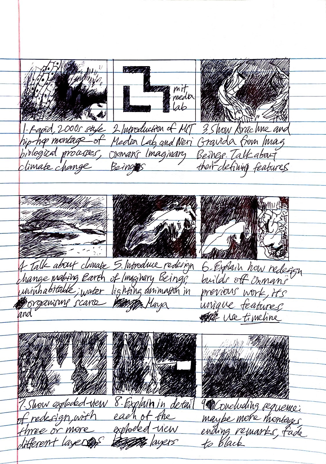 Fig 4. Speculating Imaginary Beings Storyboard, Pen and ink on paper, 2021